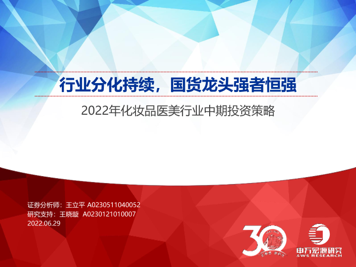 【申万宏源】【20220629】2022年化妆品医美行业中期投资策略:行业分化持续,国货龙头强者恒强-57页