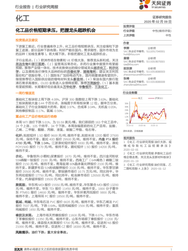 【天风证券】【20200209】20200209-天风证券-化工行业研究周报:化工品价格短期承压,把握龙头超跌机会-17页