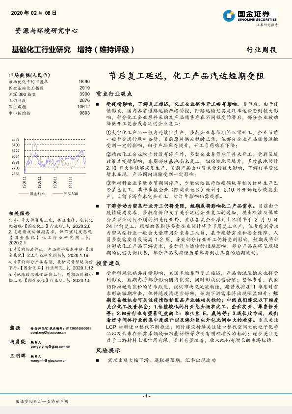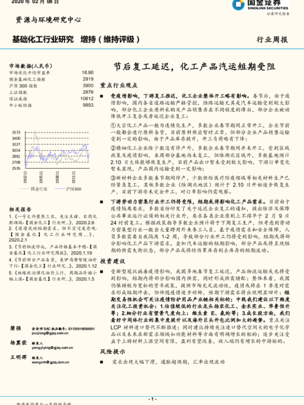 【国金证券】【20200208】基础化工行业研究:节后复工延迟,化工产品汽运短期受阻-14页