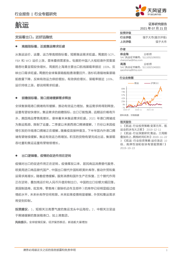 【天风证券】【20210721】航运行业交运看出口:近好远隐忧-14页