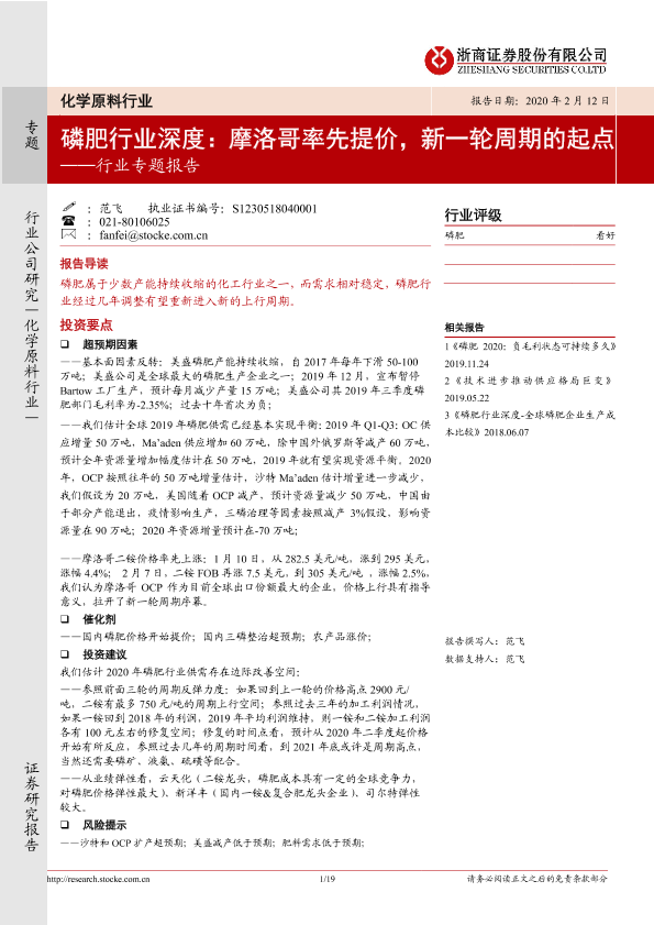 【浙商证券】【20200212】磷肥行业深度:摩洛哥率先提价,新一轮周期的起点-19页