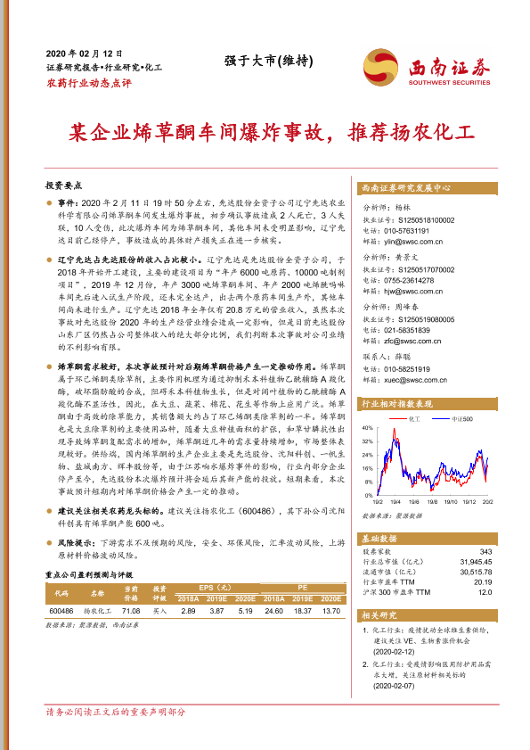 【西南证券】【20200212】农药行业动态点评:某企业烯草酮车间爆炸事故,推荐扬农化工-3页