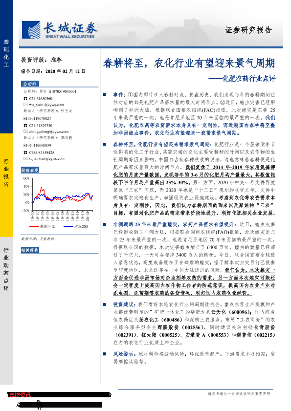 【长城证券】【20200212】化肥农药行业点评:春耕将至,农化行业有望迎来景气周期-2页