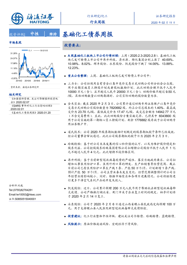 【海通证券】【20200211】20200211-海通证券-基础化工债券周报-14页