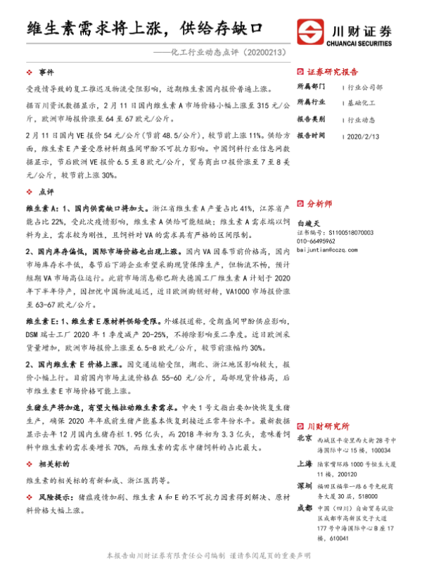 【川财证券】【20200213】化工行业动态点评:维生素需求将上涨,供给存缺口-2页