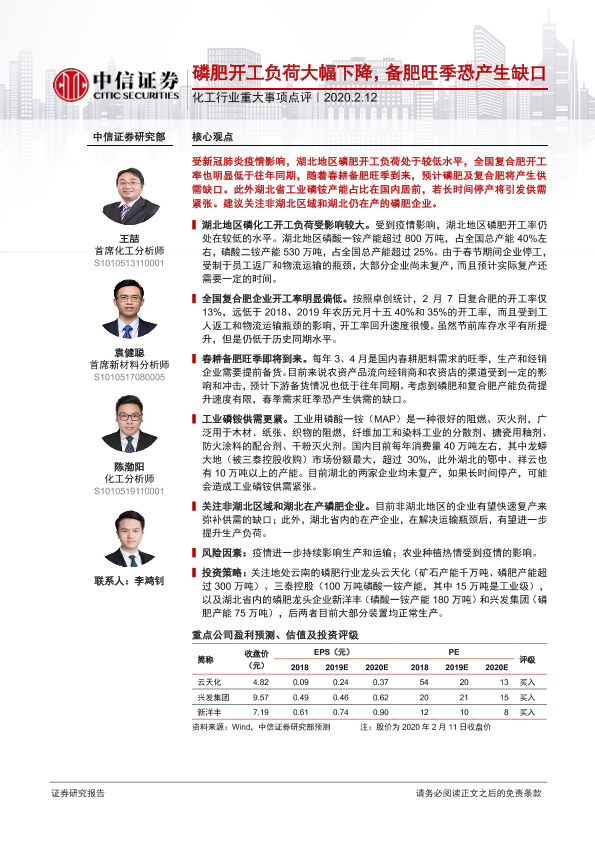 【中信证券】【20200212】磷肥开工负荷大幅下降,备肥旺季恐产生缺口-3页