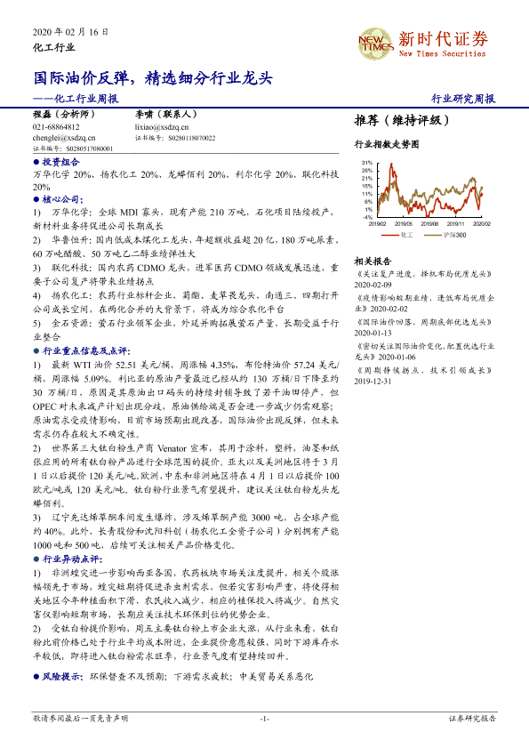 【新时代证券】【20200216】20200216-新时代证券-化工行业周报:国际油价反弹,精选细分行业龙头-16页