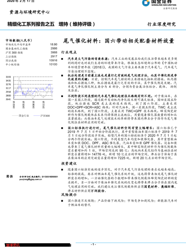 【国金证券】【20200217】精细化工系列报告之五:尾气催化材料:国六带动相关配套材料放量-22页