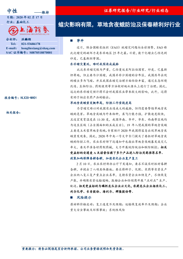 【上海证券】【20200217】20200217-上海证券-基础化工行业动态:蝗灾影响有限,草地贪夜蛾防治及保春耕利好行业-2页