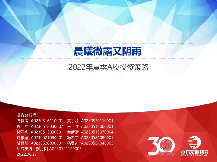 【申万宏源】【20220627】2022年夏季A股投资策略:晨曦微露又阴雨-82页