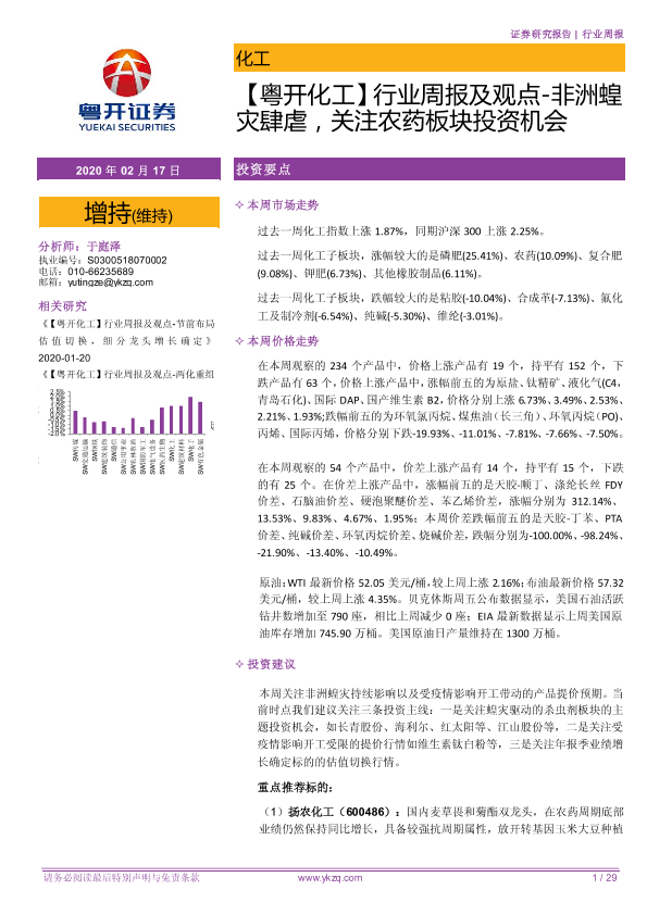 【粤开证券】【20200217】行业周报及观点-非洲蝗灾肆虐,关注农药板块投资机会-29页