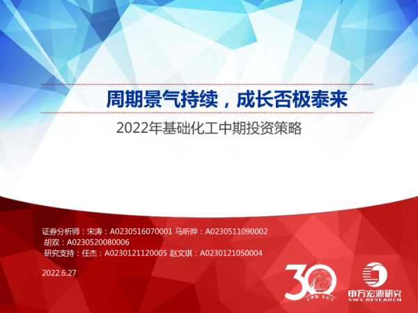 【申万宏源】【20220627】2022年基础化工行业中期投资策略:周期景气持续,成长否极泰来-107页