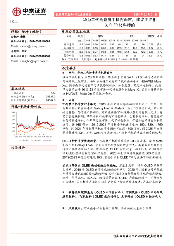 【中泰证券】【20200221】化工:华为二代折叠屏手机将面市,建议关注相关OLED材料标的-2页