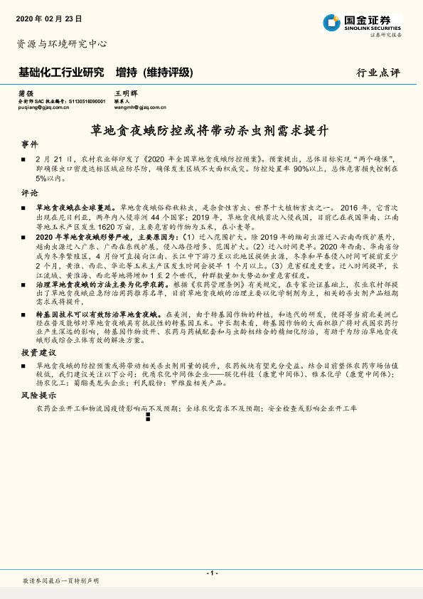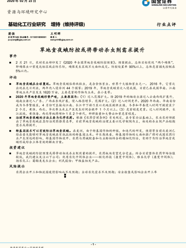 【国金证券】【20200223】基础化工行业研究:草地贪夜蛾防控或将带动杀虫剂需求提升-6页
