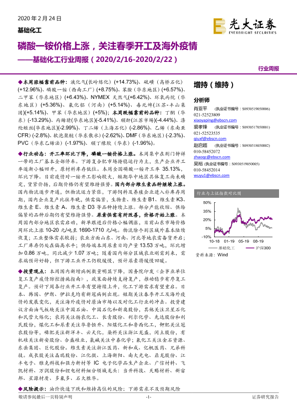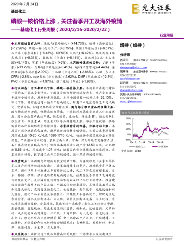 【光大证券】【20200224】基础化工行业周报:磷酸一铵价格上涨,关注春季开工及海外疫情-19页