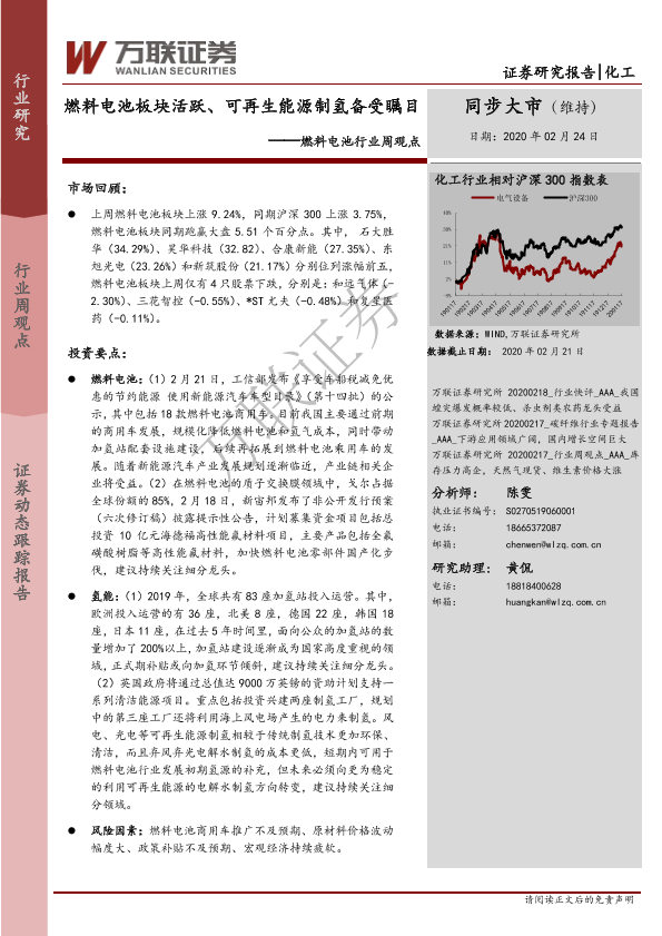 【万联证券】【20200224】燃料电池行业周观点:燃料电池板块活跃、可再生能源制氢备受瞩目-7页