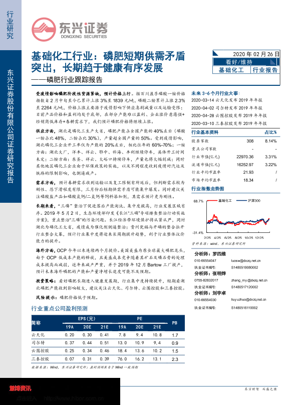【东兴证券】【20200226】基础化工行业:磷肥短期供需矛盾突出,长期趋于健康有序发展-7页