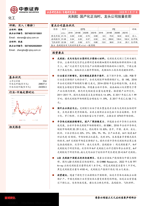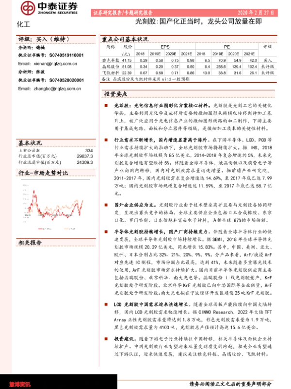 【中泰证券】【20200227】光刻胶:国产化正当时,龙头公司放量在即-22页