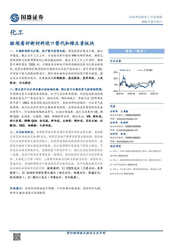 【国盛证券】【20200301】20200301-国盛证券-化工行业周报:继续看好新材料进口替代和维生素板块-10页
