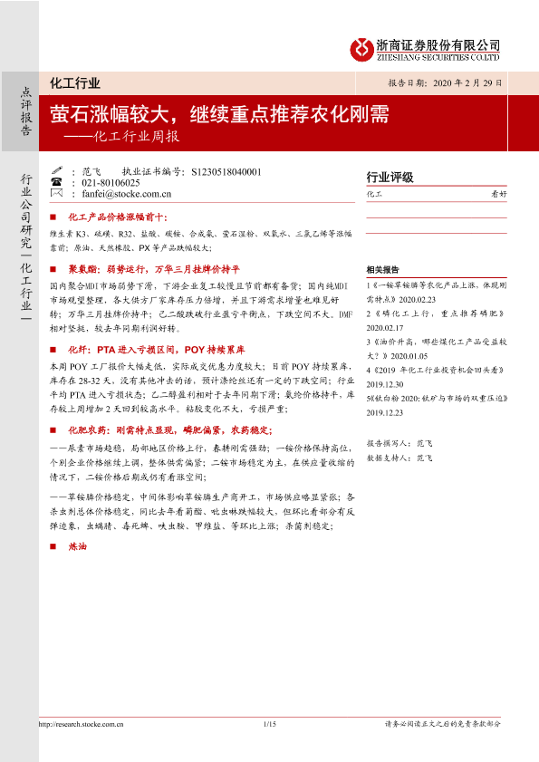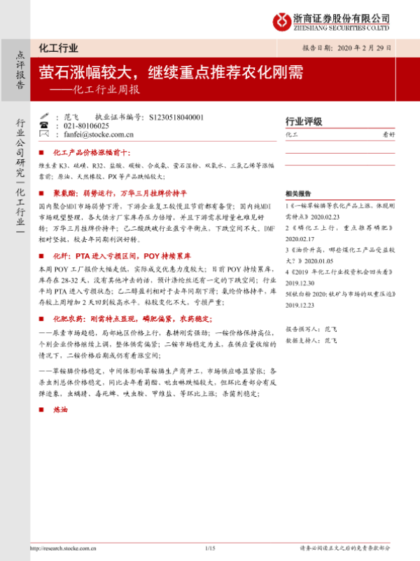【浙商证券】【20200229】20200229-浙商证券-化工行业周报:萤石涨幅较大,继续重点推荐农化刚需-15页