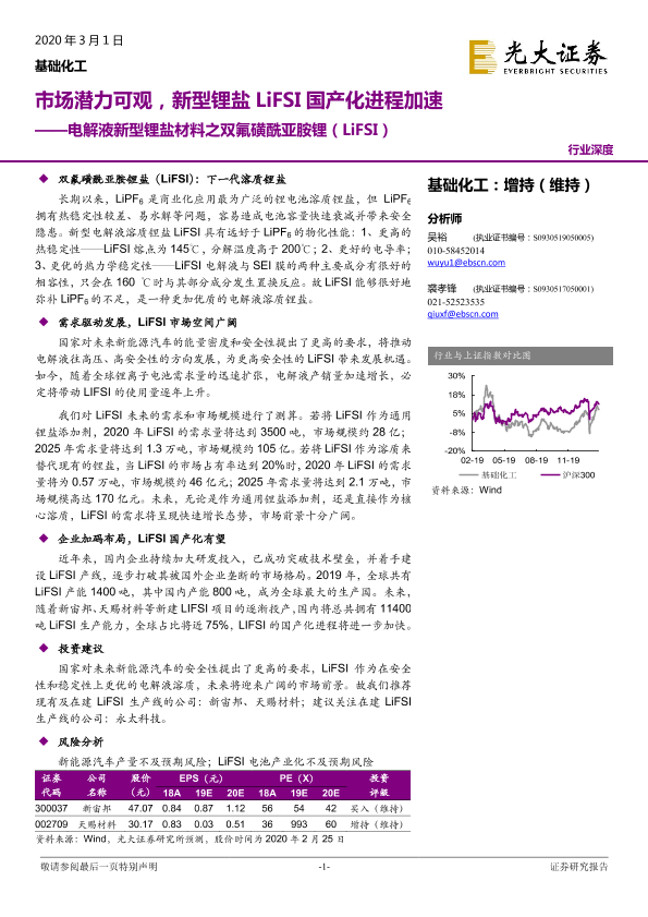 【光大证券】【20200301】电解液新型锂盐材料之双氟磺酰亚胺锂(LiFSI):市场潜力可观,新型锂盐LiFSI国产化进程加速-22页