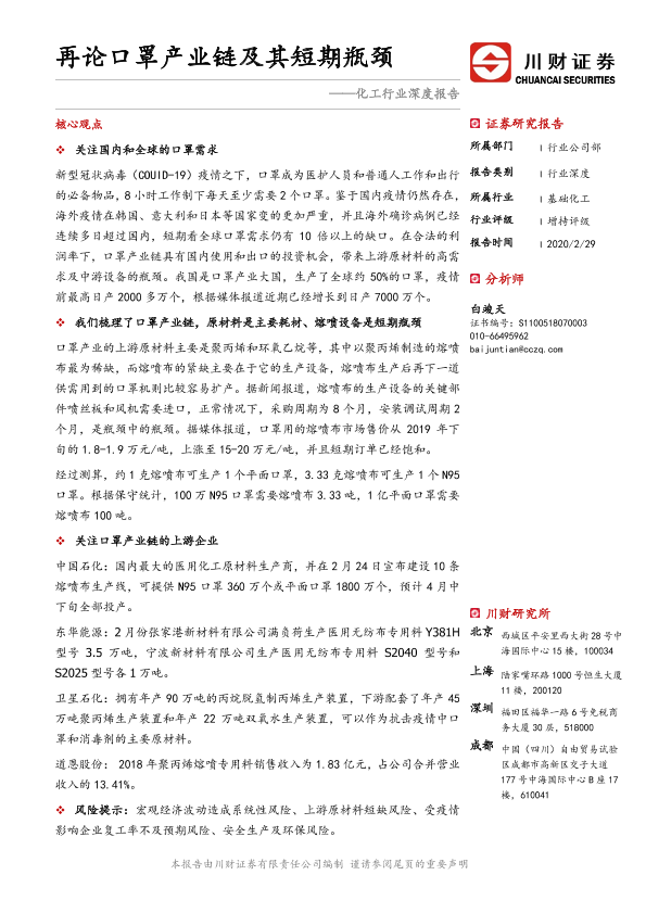 【川财证券】【20200229】化工行业深度报告:再论口罩产业链及其短期瓶颈-19页