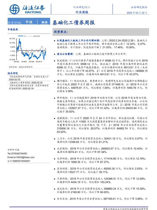 【海通证券】【20200302】20200302-海通证券-基础化工债券周报-16页