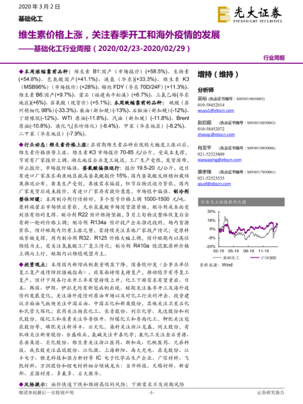 【光大证券】【20200302】基础化工行业周报:维生素价格上涨,关注春季开工和海外疫情的发展-19页