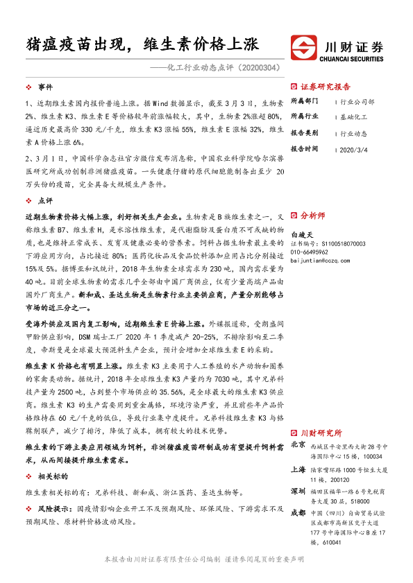 【川财证券】【20200304】化工行业动态点评:猪瘟疫苗出现,维生素价格上涨-2页