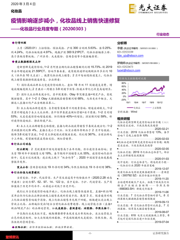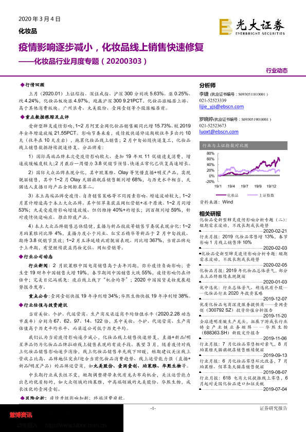【光大证券】【20200304】20200304-光大证券-化妆品行业月度专题:疫情影响逐步减小,化妆品线上销售快速修复-23页
