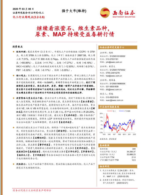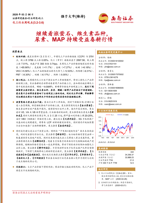 【西南证券】【20200306】20200306-西南证券-化工行业周观点:继续看涨萤石、维生素品种,尿素、MAP持续受益春耕行情-9页