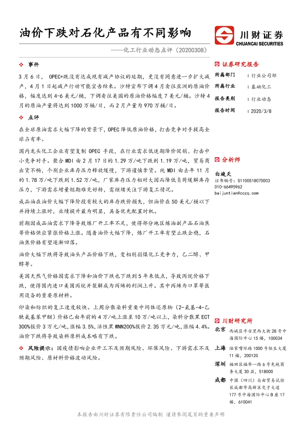 【川财证券】【20200308】油价下跌对石化产品有不同影响-2页