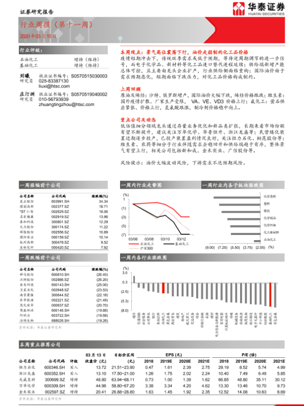 【华泰证券】【20200315】20200315-华泰证券-基础化工行业周报(第十一周)-12页
