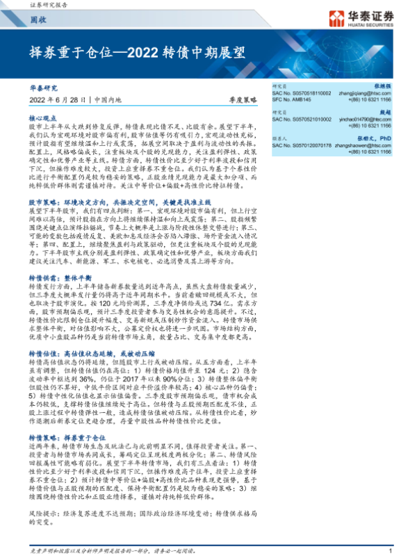 【华泰证券】【20220628】2022转债中期展望:择券重于仓位-32页