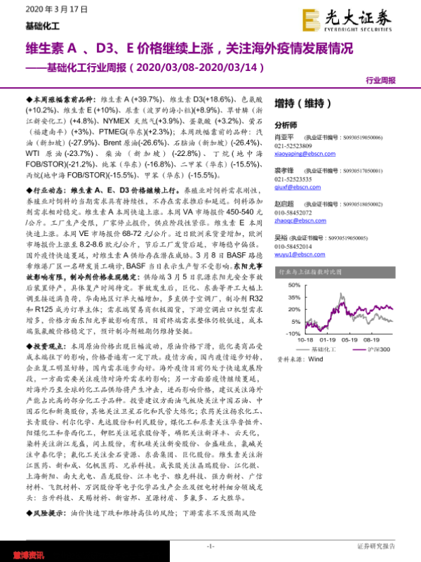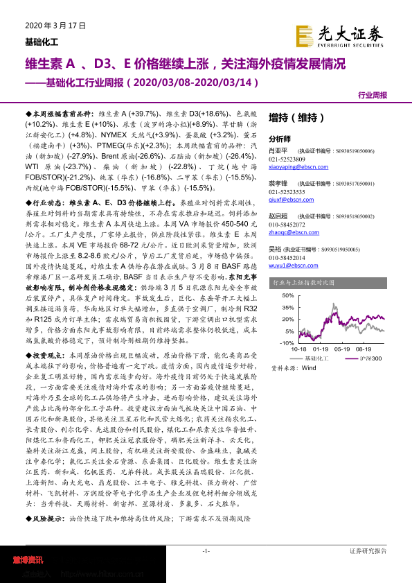 【光大证券】【20200317】基础化工行业周报:维生素A、D3、E价格继续上涨,关注海外疫情发展情况-19页