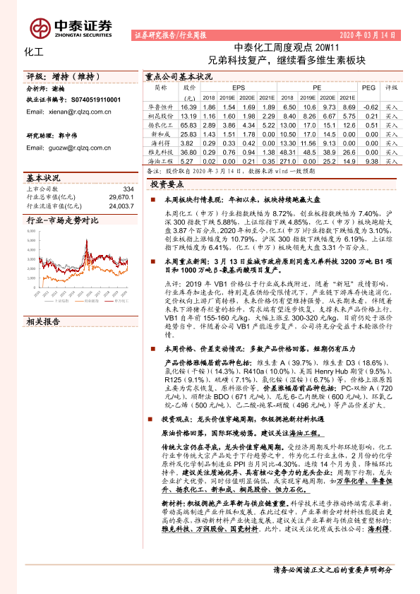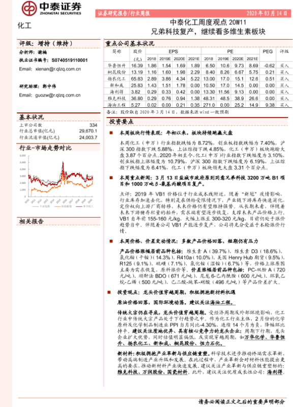 【中泰证券】【20200314】中泰化工周度观点20W11:兄弟科技复产,继续看多维生素板块-24页