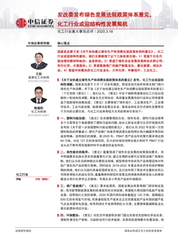【中信证券】【20200318】发改委发布绿色发展法规政策体系意见,化工行业或迎结构性发展契机-3页