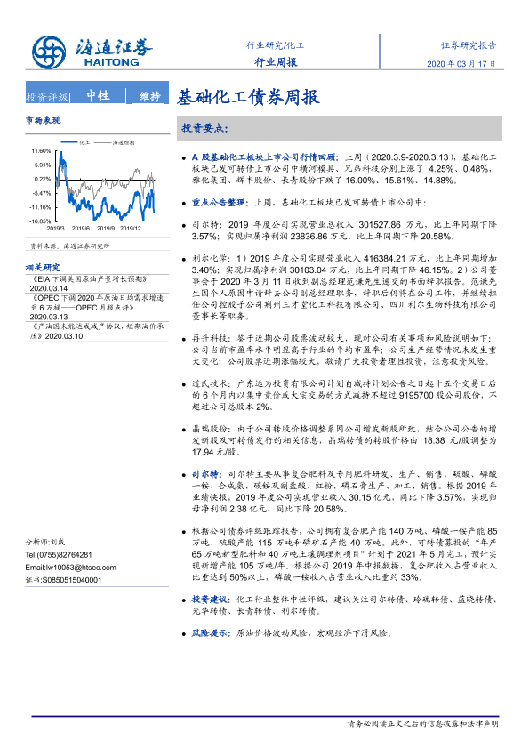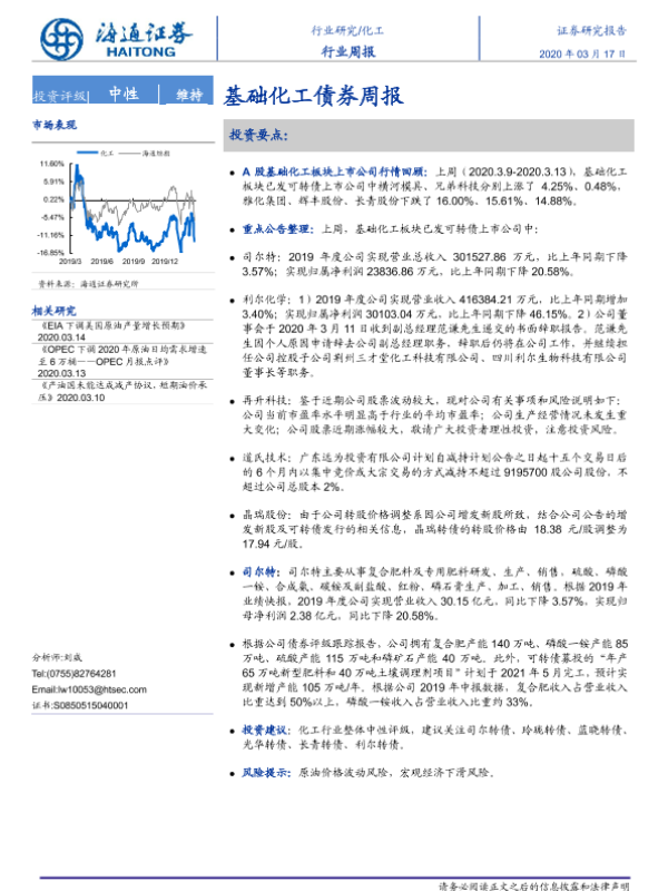 【海通证券】【20200317】20200317-海通证券-化工行业周报:基础化工债券周报-15页