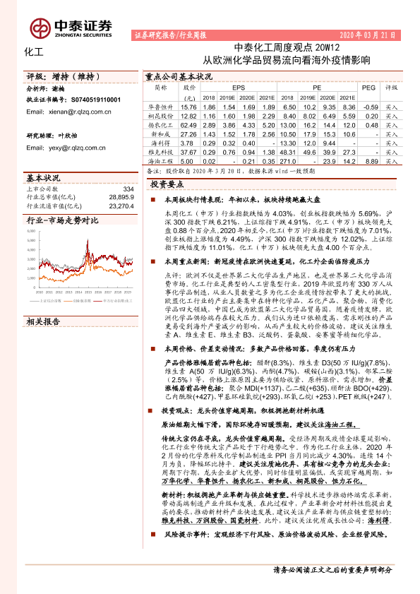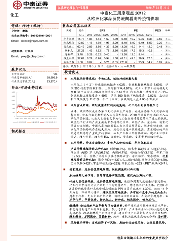 【中泰证券】【20200321】中泰化工周度观点20W12:从欧洲化学品贸易流向看海外疫情影响-25页
