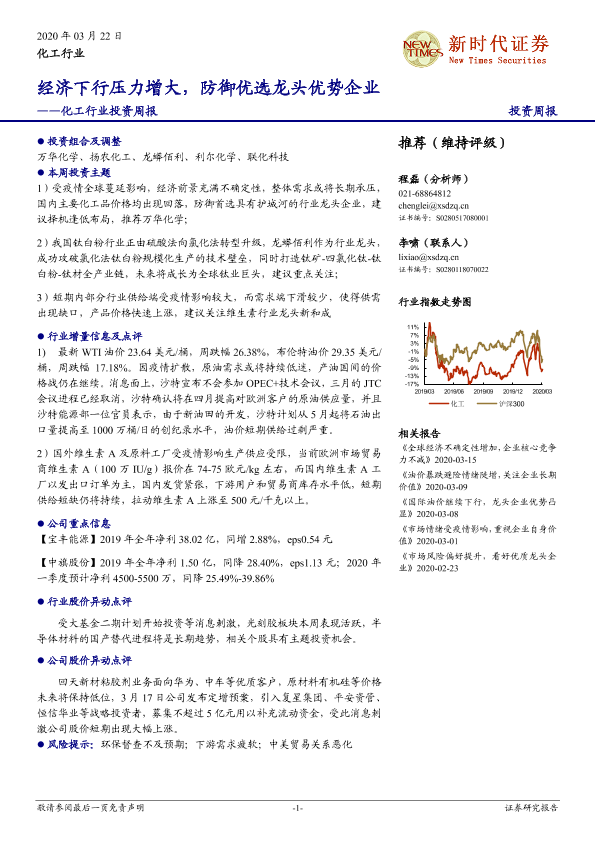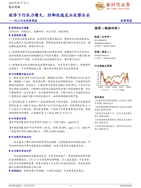 【新时代证券】【20200322】20200322-新时代证券-化工行业投资周报:经济下行压力增大,防御优选龙头优势企业-17页