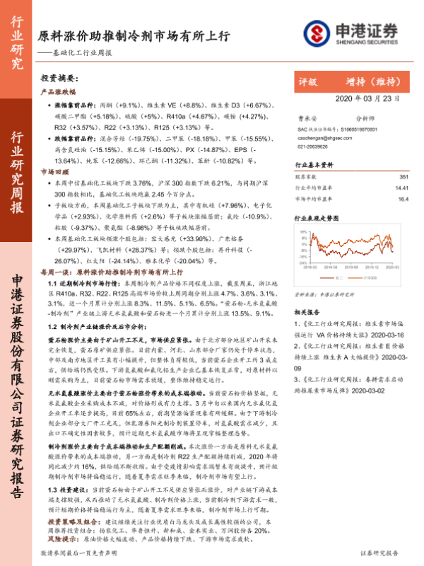 【申港证券】【20200323】20200323-申港证券-基础化工行业周报:原料涨价助推制冷剂市场有所上行-18页