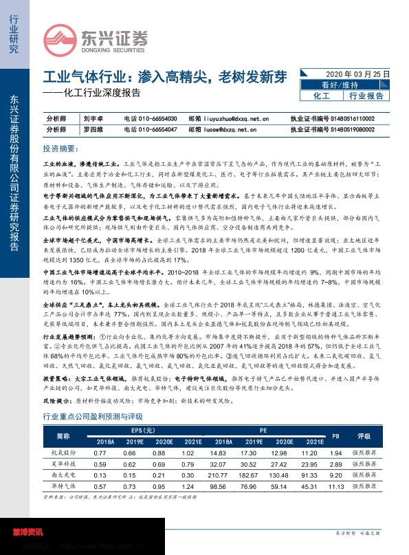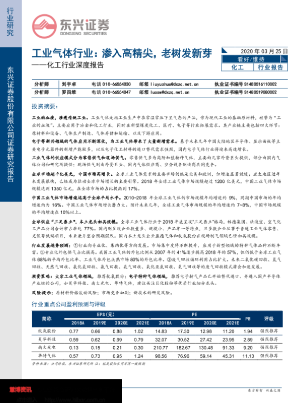 【东兴证券】【20200325】20200325-东兴证券-化工行业深度报告:工业气体行业:渗入高精尖,老树发新芽-18页