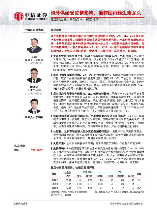 【中信证券】【20200331】海外供给受疫情影响,推荐国内维生素龙头-4页