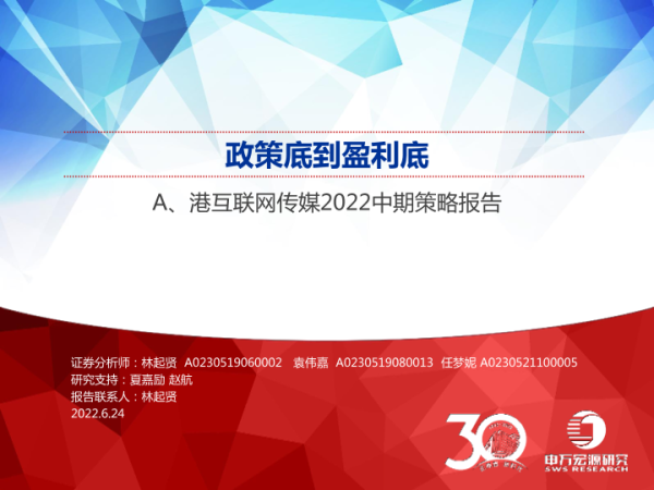 【申万宏源】【20220624】A、港互联网传媒行业2022中期策略报告:政策底到盈利底-76页