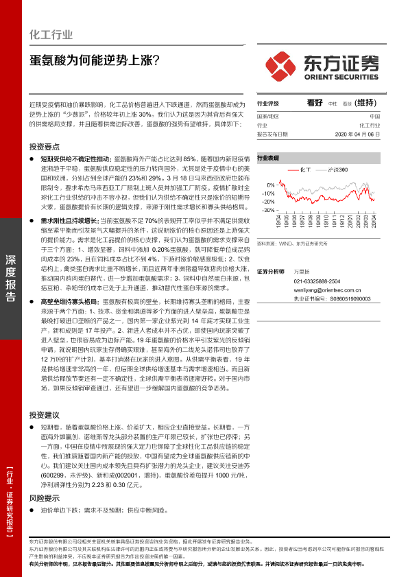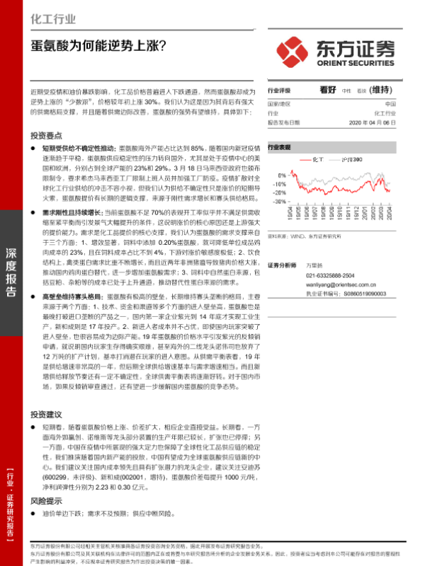 【东方证券】【20200406】化工行业深度报告:蛋氨酸为何能逆势上涨?-15页