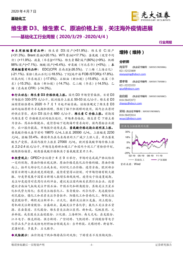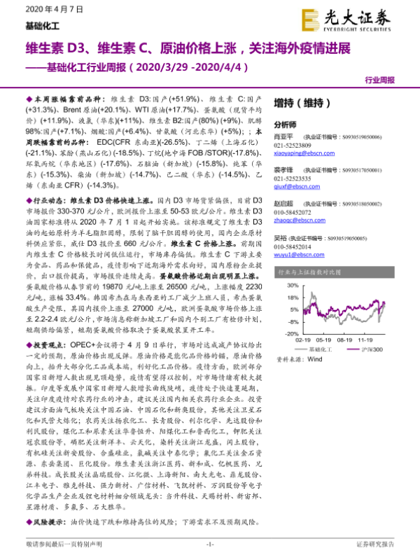 【光大证券】【20200407】基础化工行业周报:维生素D3、维生素C、原油价格上涨,关注海外疫情进展-19页