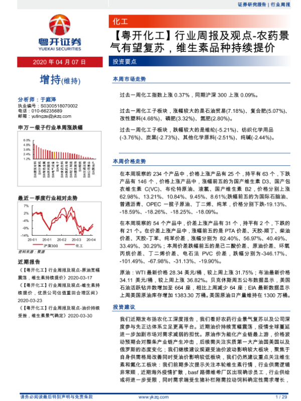 【粤开证券】【20200407】行业周报及观点-农药景气有望复苏,维生素品种持续提价-29页