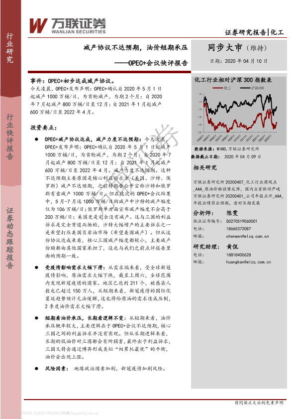 【万联证券】【20200410】化工:OPEC+会议快评报告-减产协议不达预期,油价短期承压-3页