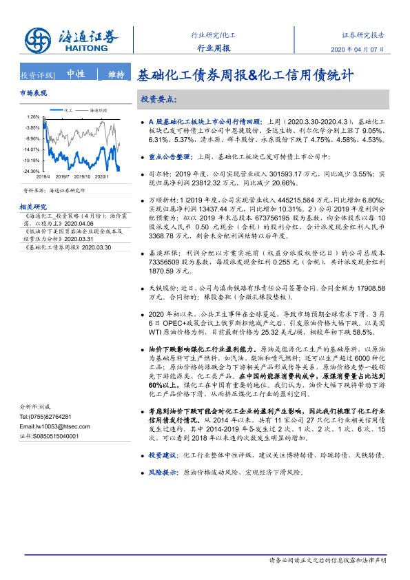 【海通证券】【20200407】20200407-海通证券-化工行业周报:基础化工债券周报&化工信用债统计-18页