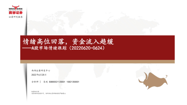 【西部证券】【20220625】A股市场情绪跟踪:情绪高位回落,资金流入趋缓-16页